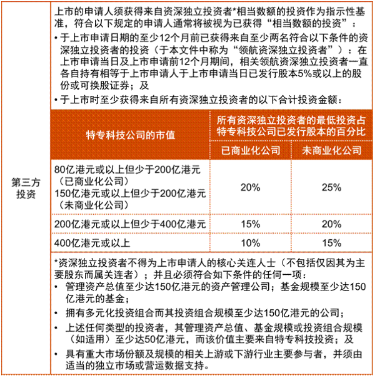 該文件提議修訂《上市規(guī)則》以讓特專科技公司于聯(lián)交所主板上市,并就此征詢市場意見。咨詢期將于2022年12月18日結(jié)束。聯(lián)交所建議允許已商業(yè)化公司和未商業(yè)化公司在符合下表中所列的上市資格和其他規(guī)定的情況下進(jìn)行上市。“已商業(yè)化公司”是指已將其特專科技產(chǎn)品商業(yè)化并錄得相當(dāng)數(shù)額的收入的公司。“未商業(yè)化公司”是指主要從事研發(fā),集資的目的是拓展其研發(fā)工作,以期將特專科技產(chǎn)品商業(yè)化,及/或尚未錄得相當(dāng)數(shù)額收入的公司。