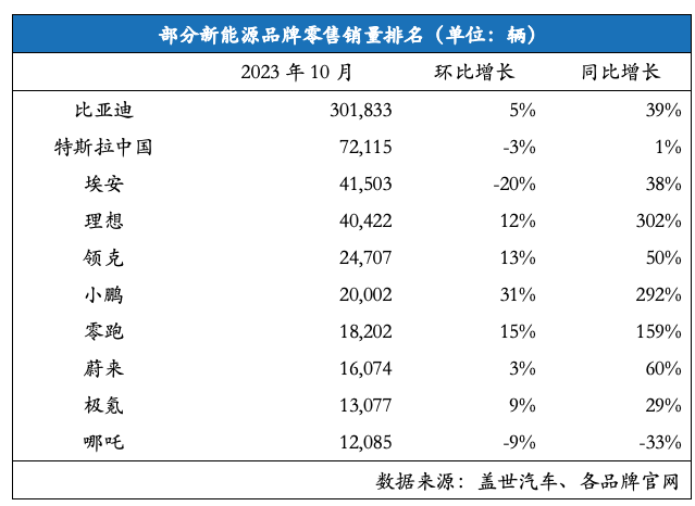 部分新能源品牌具體零售銷量如下: