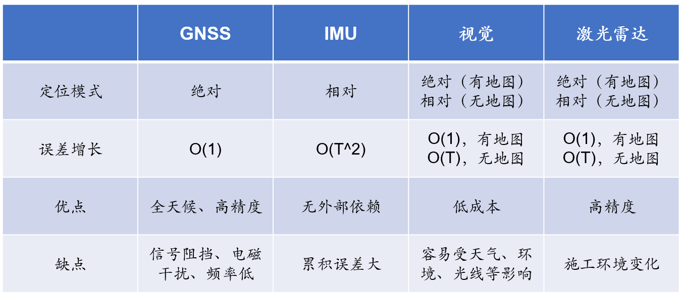 不同位置信息獲取技術(shù)方案各自具有明顯優(yōu)劣勢(shì)。衛(wèi)星導(dǎo)航定位方案成熟度最高,可以獲得車輛全天候的絕對(duì)位置信息,但問題在于它需要依賴衛(wèi)星所提供的外部信號(hào),如果在隧道等受遮擋的環(huán)境下,會(huì)存在信號(hào)減弱甚至丟失等情況,同時(shí)在某些情況下也會(huì)受到電磁干擾。慣性定位沒有外部依賴性,但存在誤差累計(jì)等問題,無法長時(shí)間單獨(dú)使用,通常比較適合于短時(shí)內(nèi)的局部定位或者輔助衛(wèi)星導(dǎo)航進(jìn)行定位。環(huán)境特征匹配方法所需要的傳感器如攝像頭和激光雷達(dá),容易受到天氣、環(huán)境、光線等外部條件的影響,并且在環(huán)境發(fā)生變化時(shí)也容易出現(xiàn)定位不準(zhǔn)確的問題。